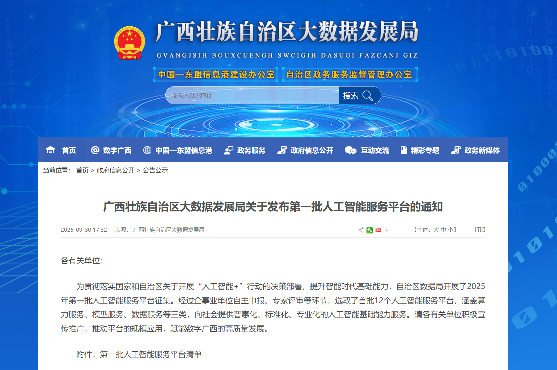 北部灣大數(shù)據(jù)交易中心成功入選廣西首批人工智能服務平臺名單